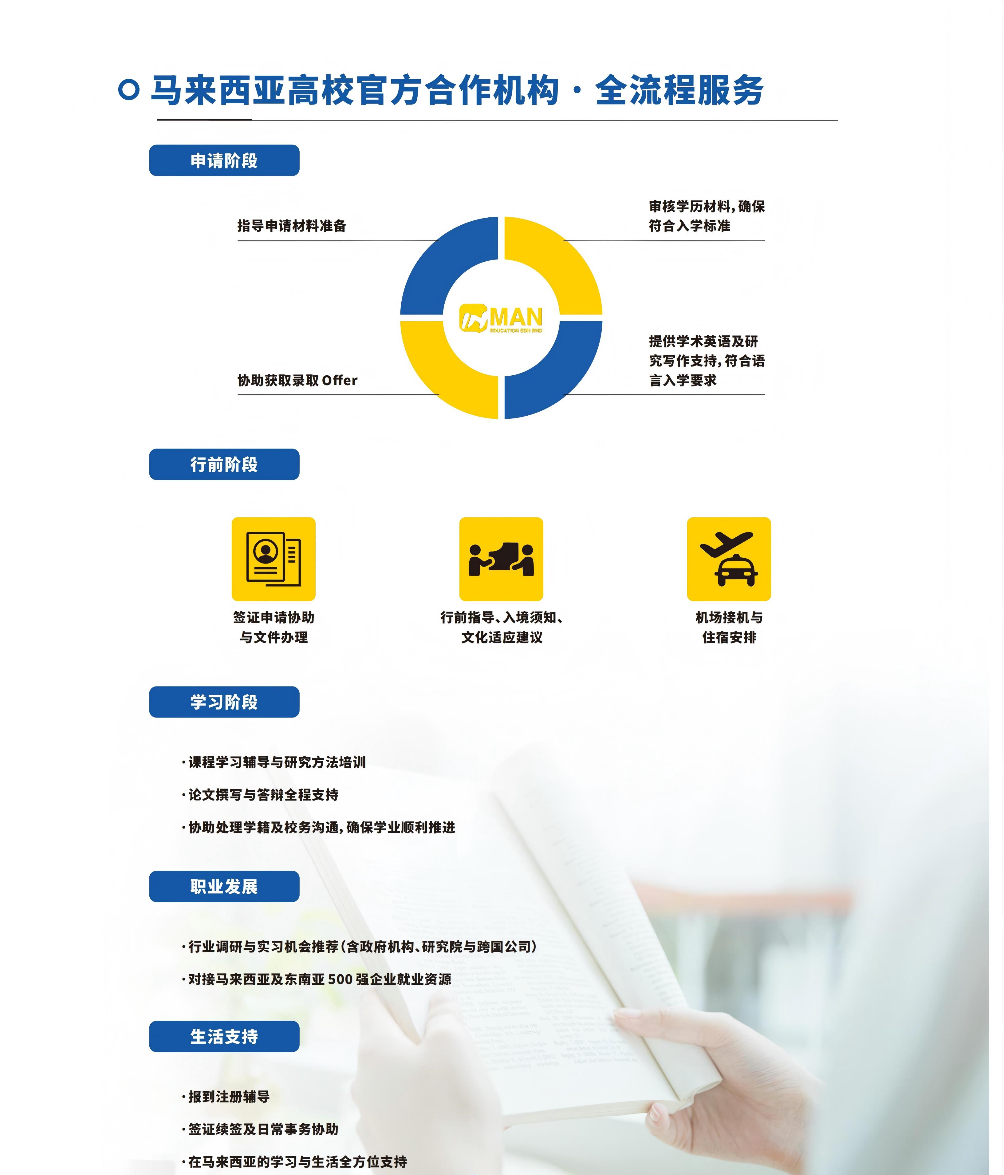 - 马来西亚高校的录取程序透明而严谨,英曼教育作为多所高校的官方合作机构,为学生提供从申请准备、行前指导、学习阶段到职业发展的全流程陪伴。我们不仅协助学生完成材料审核、课程衔接与签证办理,更在抵达后提供落地支持、课程辅导与就业资源衔接,确保学生“读得下去、毕业得出来、未来有方向”。